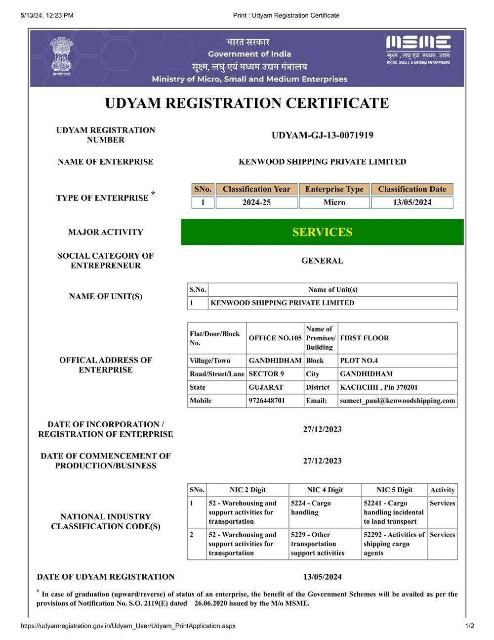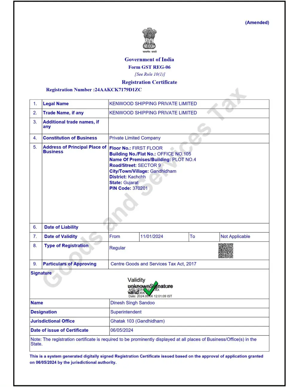 | 1 | Certificate of Registration | Pan Card | Passport | Passport |